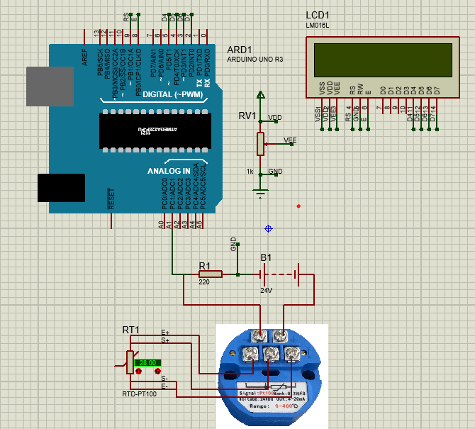 Yêu cầu: Đọc nhiệt độ từ cảm biến PT100 và hiển thị lên LCD 16x2